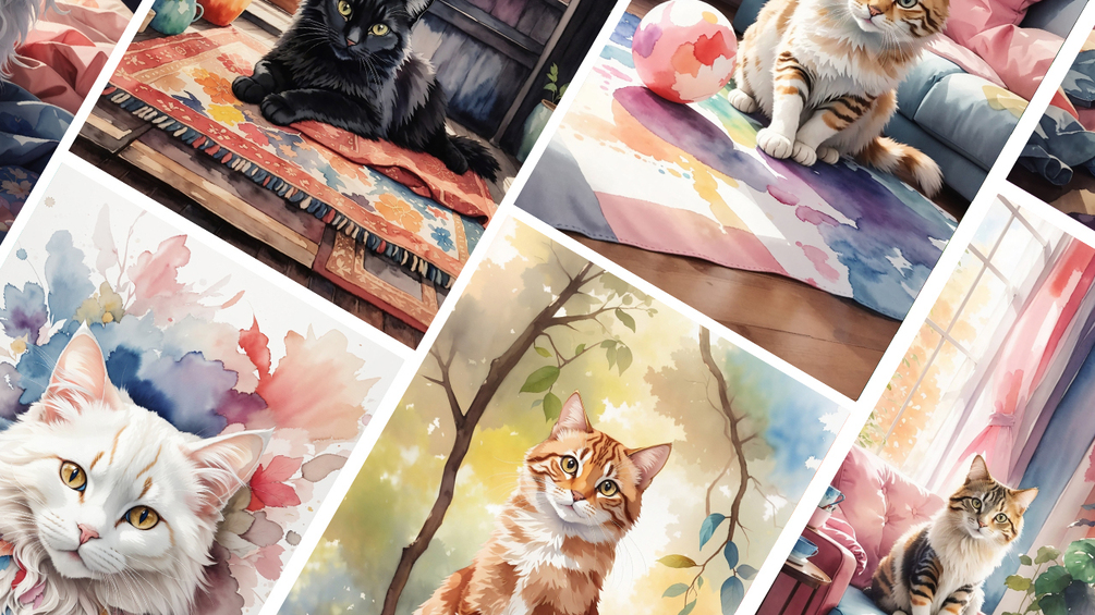 Everyone appreciates the cuteness of a lovable cat, and now you can enjoy their company on your screens with these lovely watercolor-style cat wallpapers. If you're a cat lover, it's a delightful way to have your feline friends with you all the time. Download them now!